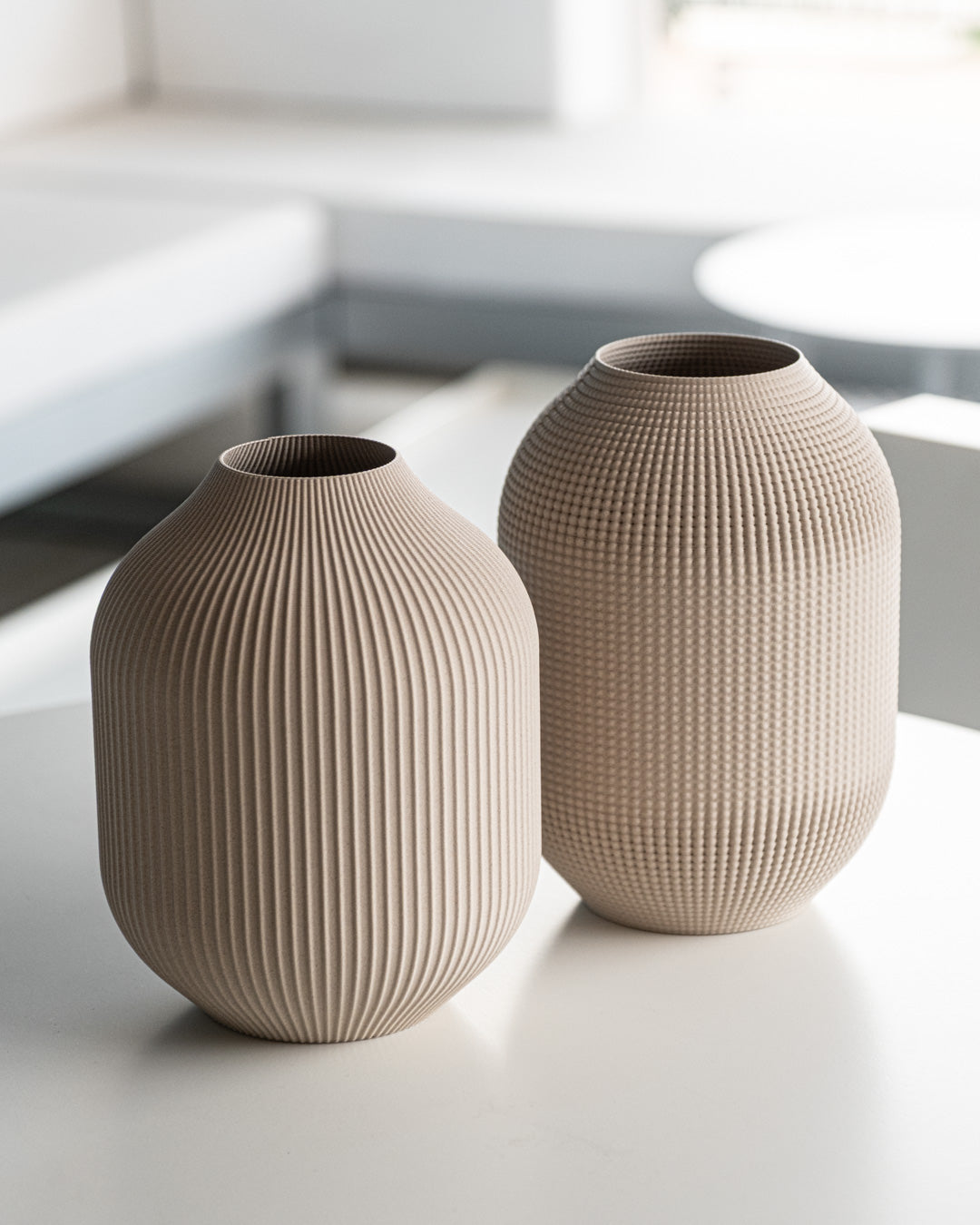 No imponemos texturas desde fuera. Permitimos que la naturaleza interna de cada material emerja durante el proceso de impresión, creando superficies orgánicas y únicas.