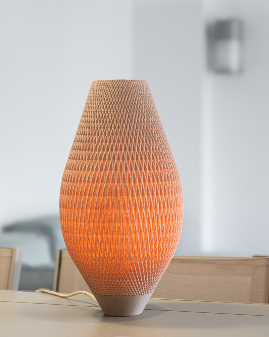 Tecnología y proceso:Cada lámpara se imprime una a una en nuestro taller en Girona, utilizando impresoras 3D diseñadas y fabricadas por nosotros para garantizar la máxima calidad. No es un proceso industrial: es fabricación lenta y artesanal, donde cada capa de material se deposita con precisión para crear piezas únicas.